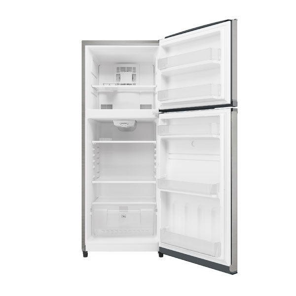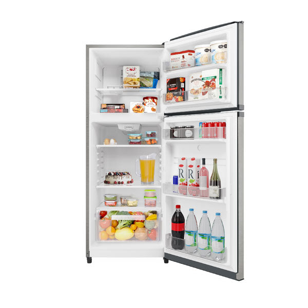 El Refrigerador Top Mount Mabe cuenta con una capacidad de almacenamiento de 14 pies cúbicos, su sistema de enfriamiento de torre distribuye uniformemente el aire frío y te permite conservar tus alimentos en excelentes condiciones. Está fabricado con acero inoxidable, lo cual ofrece calidad y durabilidad. Además, posee parrillas de cristal templado de fácil limpieza, anaqueles de plástico, luz interior, ahorro de energía y jaladera tipo pocket. En la zona del refrigerador hallarás 3 parrillas que optimizan el acomodo de tu comida, 1 cajón legumbrero para mantener tus frutas y verduras, 3 anaqueles completos y un medio anaquel para el acomodo de latas, refrescos o botellas; en la zona del congelador su parrilla y sus dos anaqueles te ayudan a organizar de mejor manera tus alimentos congelados.
